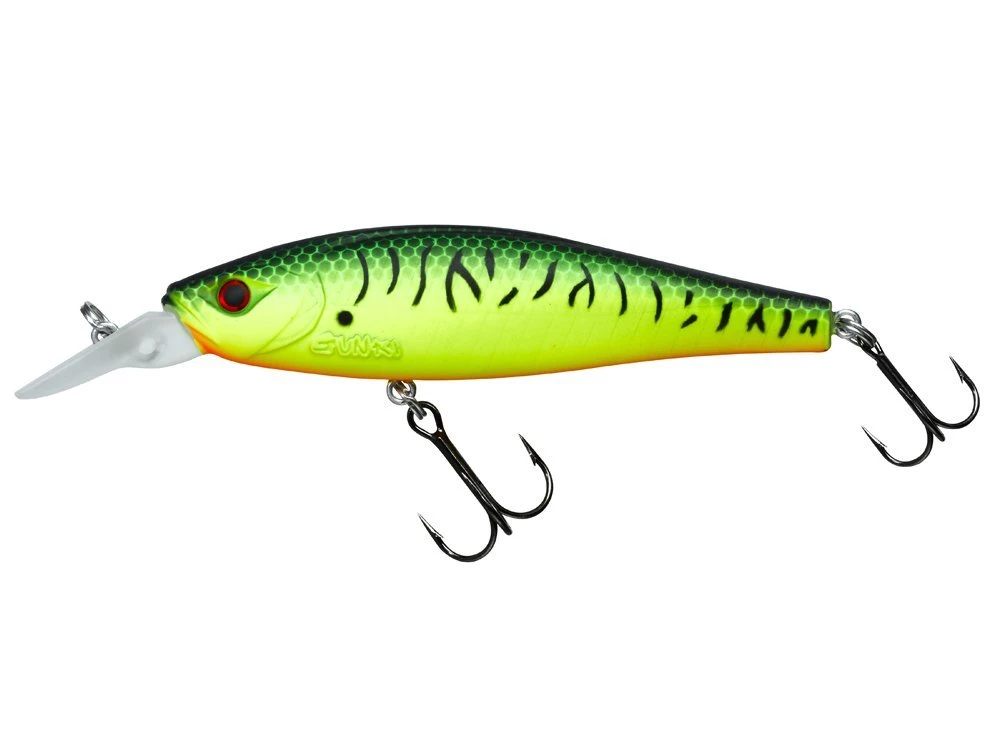 Stable and compact lure that has a wide wobbling action when brought straight back. You can add a more pronounced rolling action to your retrieves by twitching and jerking the lure. Takes are provoked by the water displacement generated by this dense lure which gives off the impression of a sizeable prey fish on the move. A great lure for the roving angler trying to locate fish on new waters.