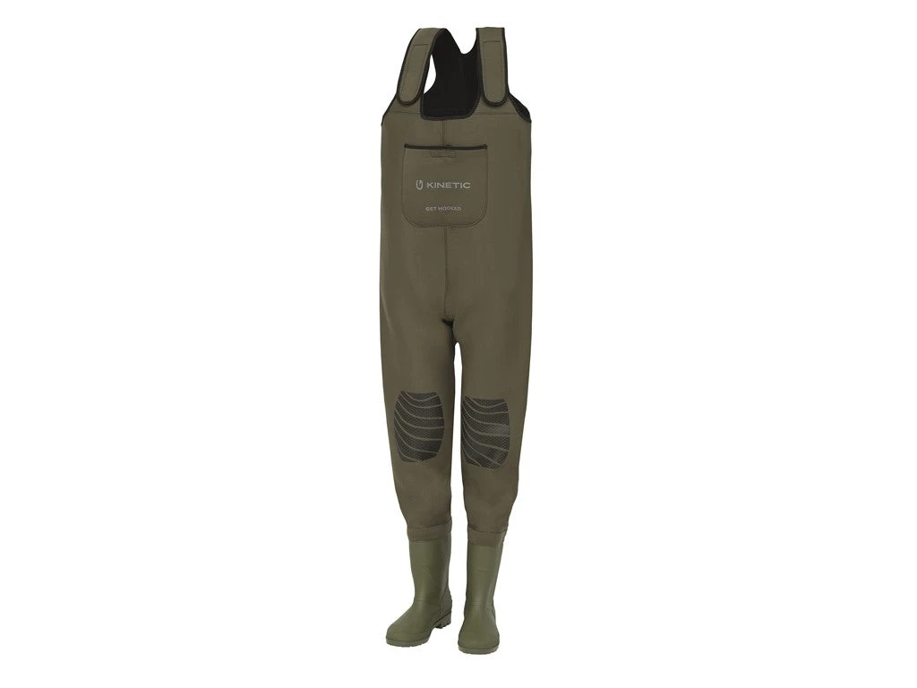 Choose NeoGaiter neoprene chest waders when the weather turns cool. The 4mm neoprene construction provides ideal flexibility and mobility. All seams are taped, glued and stitched to protect against leaks and deliver long-lasting performance. Rubber boats with cleated soles. Adjustable neoprene shoulder straps help provide a comfortable, customized fit. Also features chest pocket and a D-ring in the back.