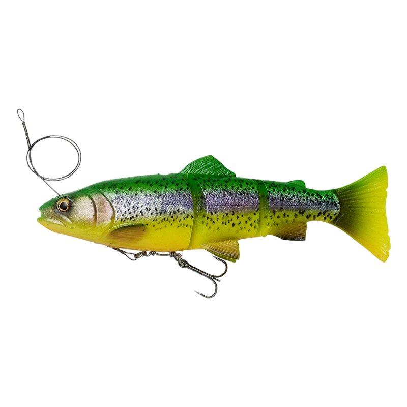 The 4D Line Thru trout is designed with a larger Ø Line thru channel, so it is possible to change the trace easy. It comes pre-rigged with a Carbon49 wire trace, mounted with the line modifier clip. The 4D trout have perfectly enhanced details and a realistic S-curve swimming action combined with the perfect Photo chrome skin print and Scent, making this lure even more effective!