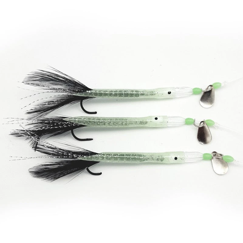 Once again, this rig is one of the products which put Shamrock firmly on the Fishing Map! The luminous body has been made slightly translucent to allow the feathers to show through which reflects more life, like a bait fish. Really superb for Cod, Ling, Haddock, Pollock, Coalies, and even the bigger fish, Conger, Huss etc.